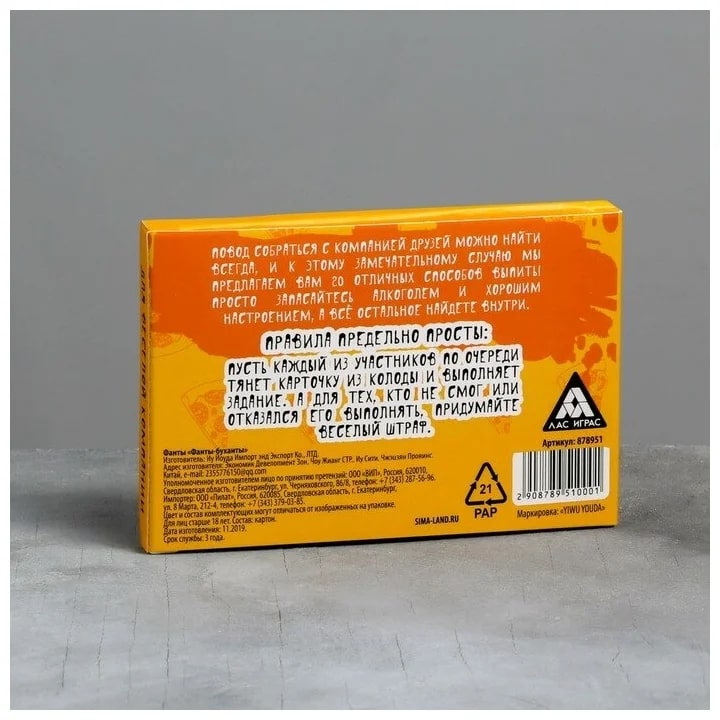 Купить игра для компании "фанты буханты" 20 карт от 100 руб. с доставкой до пункта выдачи в Барнауле. Интернет магазин ДекаМаркет. Оплата при получении.